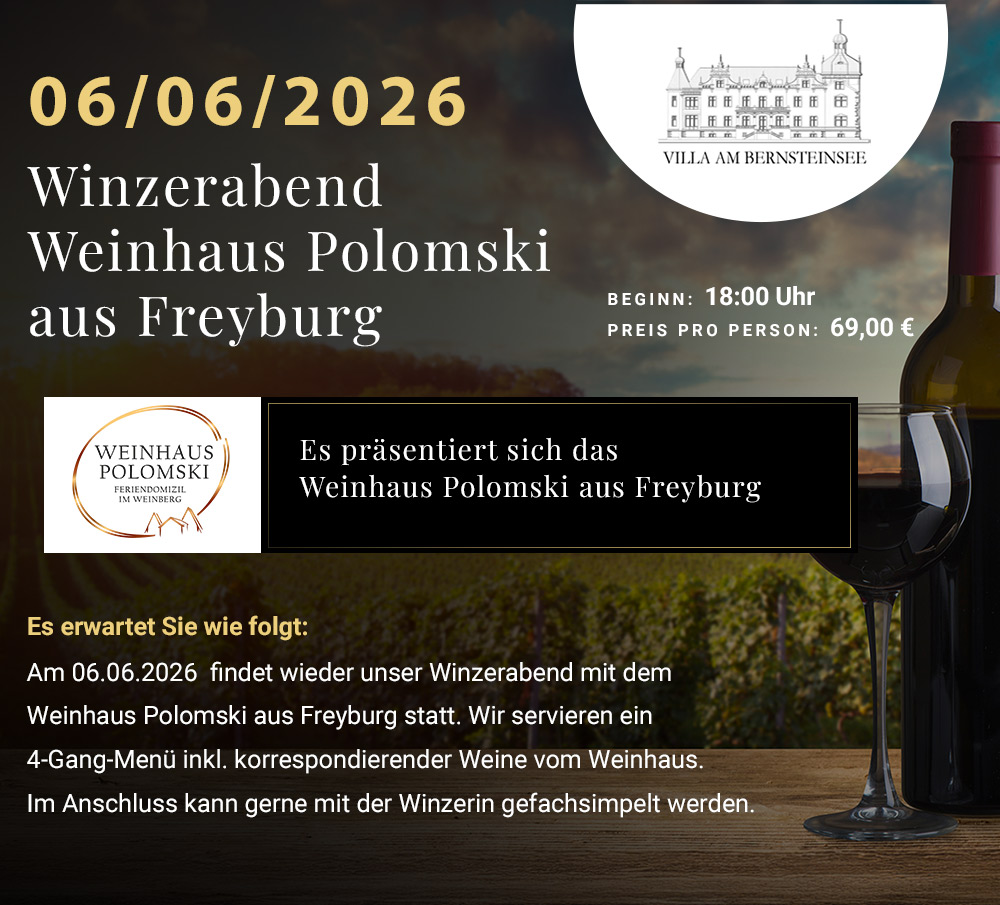Wir servieren dazu ein 4 Gang Menü inkl. korrespondierender Weine für 69,00 € pro Person für Wein und Menü. Im Anschluss kann gerne mit dem Winzer noch gefachsimpelt werden.